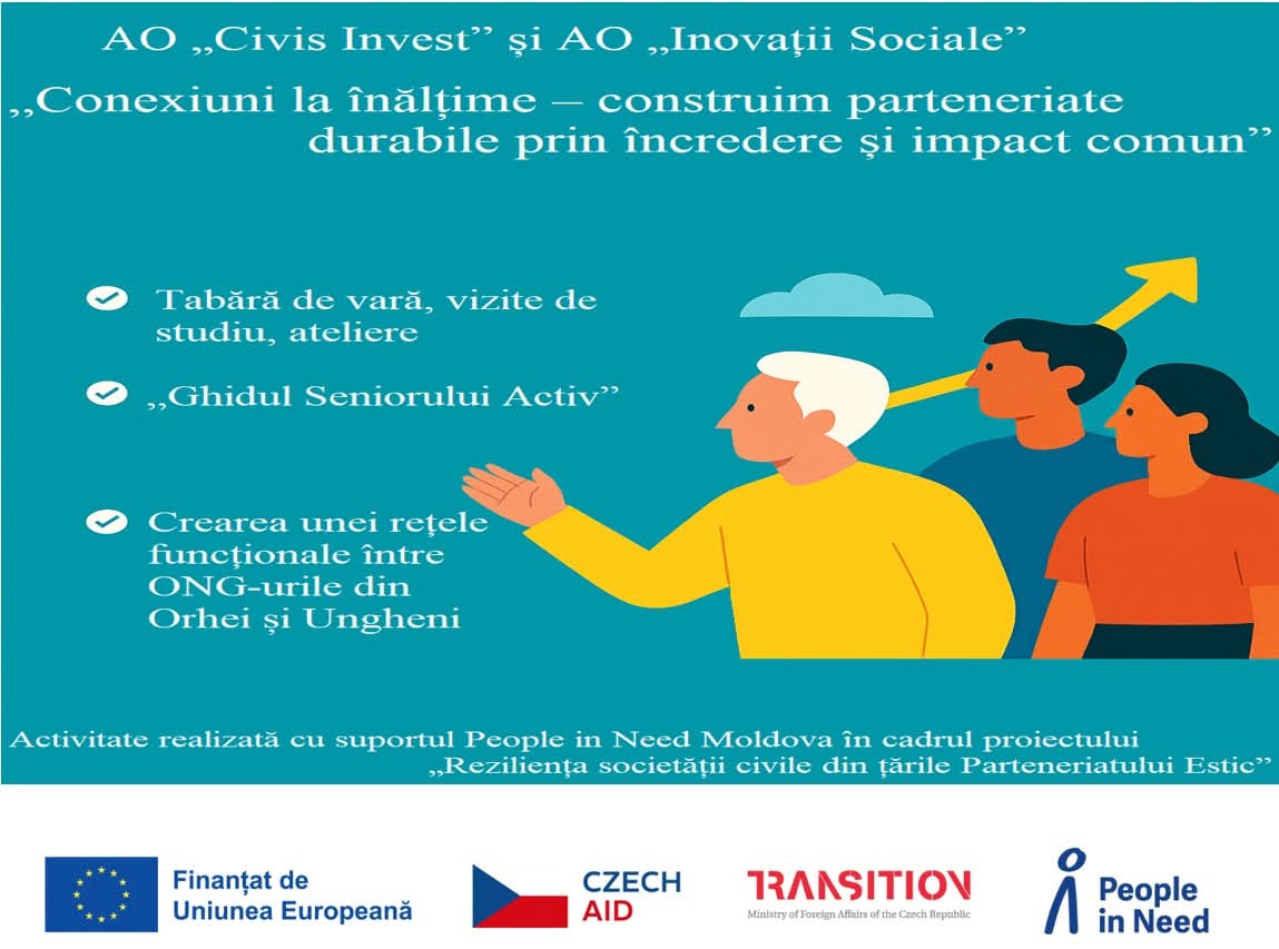 AO „Civis Invest” și AO „Inovații Sociale” lansează proiectul „Conexiuni la înălțime – construim parteneriate durabile prin încredere și impact comun”, dedicat consolidării colaborării dintre ONG-urile din raioanele Orhei și Ungheni.