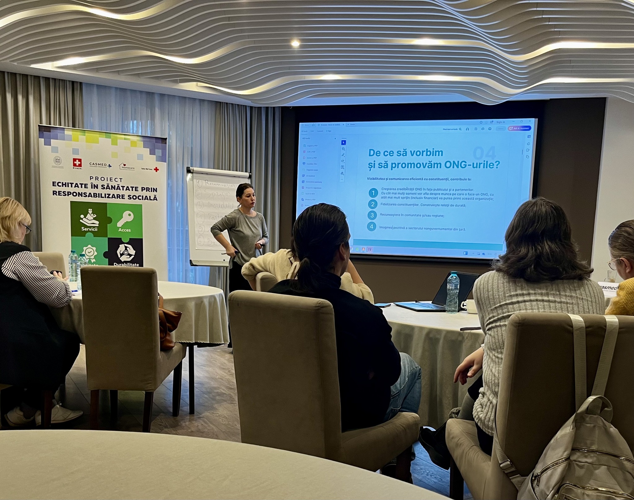 În cadrul instruirii am discutat despre cum să transmitem mesaje clare și cum să promovăm acțiunile noastre astfel încât să ajungă la comunitate și parteneri.